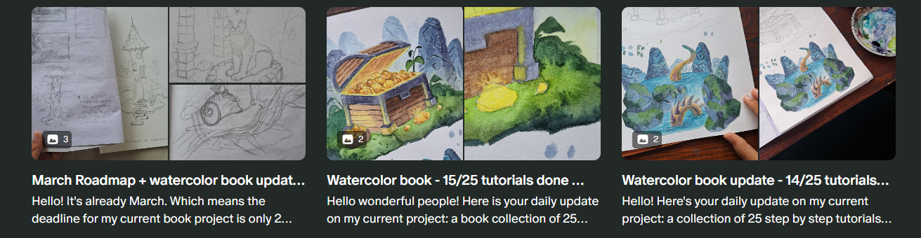 February. The bulk of the book is the 25 tutorial projects, which took me the longest time to illustrate. And my deadline was 30th April 2026. So I set out a schedule to complete 1 tutorial per day, at the least the first draft of it. At the end of each day, I wrote a Patreon post, like a diary entry, sharing how it went that day.