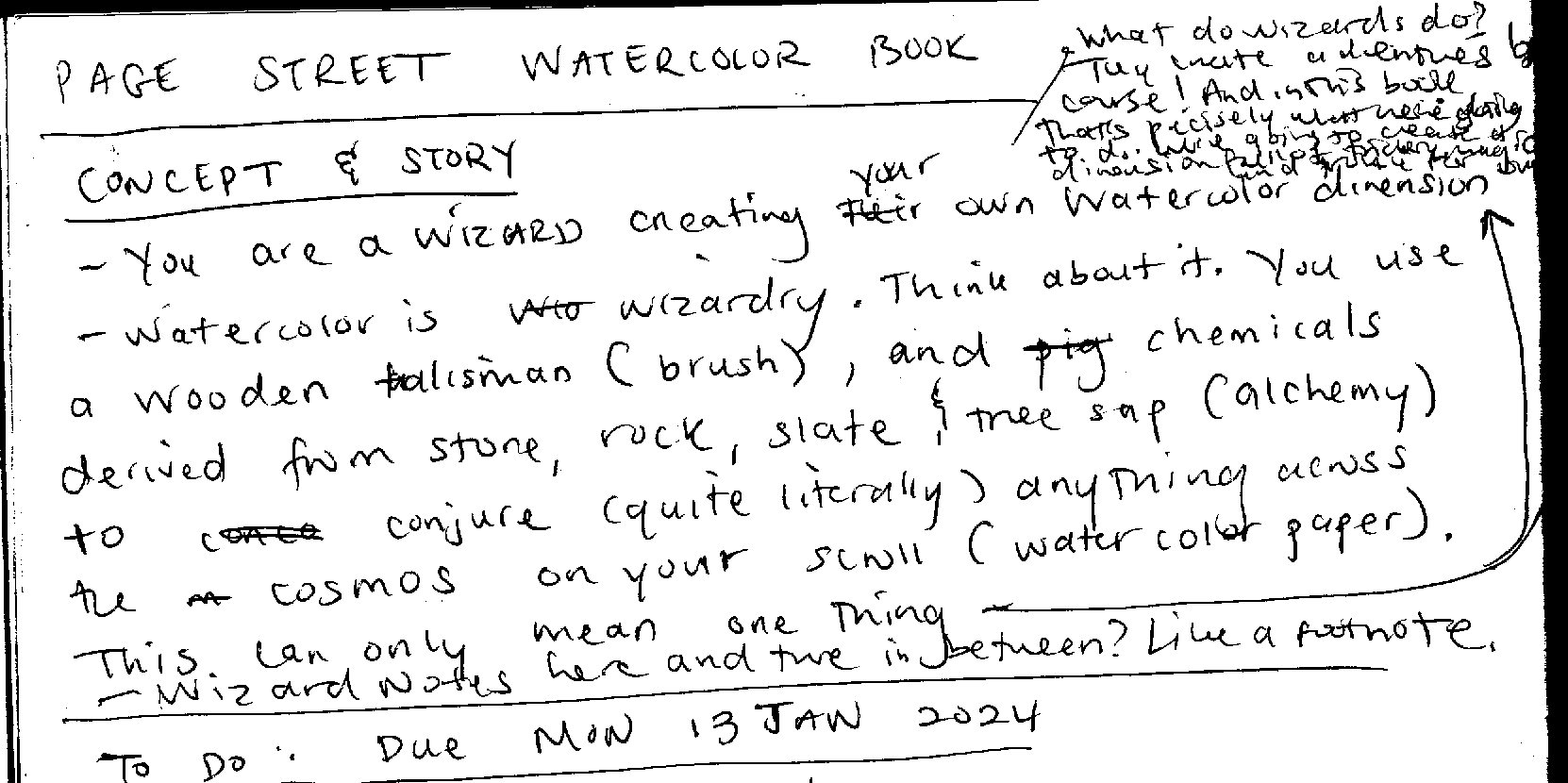 I imagined talking directly to the reader, involving them as a wizard creating their own watercolor dimension.